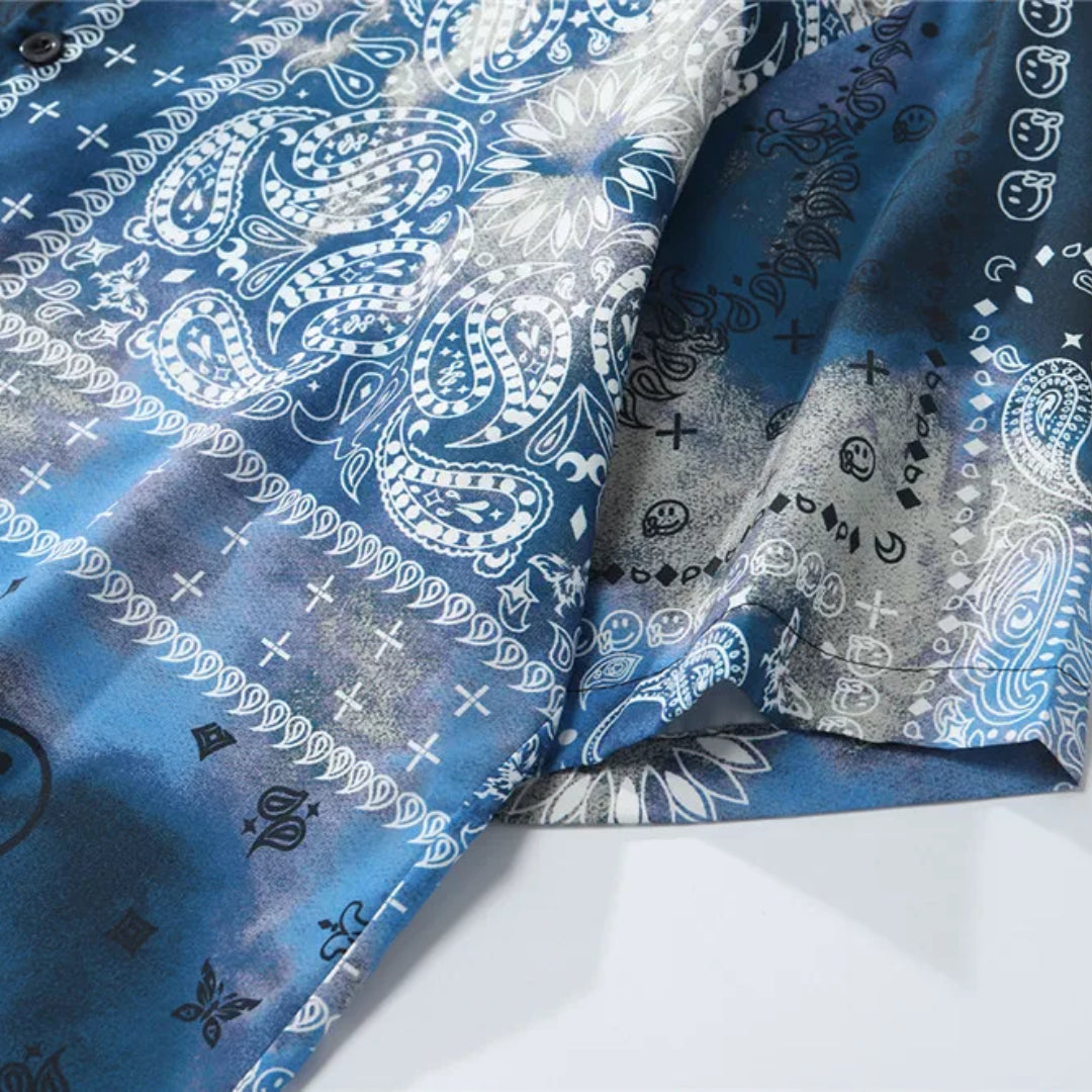 Our Bandana Patchwork Summer Shirt is built from lightweight polyester with curated bandana pattern fragments designed to celebrate street culture heritage through contemporary patchwork artistry. The loose construction and classic turn-down collar create relaxed summer proportions, while our collage printing process layers authentic paisley motifs, tie-dye sections, and traditional bandana borders in harmonious blue tones. Street culture references and artisanal patchwork aesthetics create pieces that honor hip-hop heritage while delivering modern comfort.