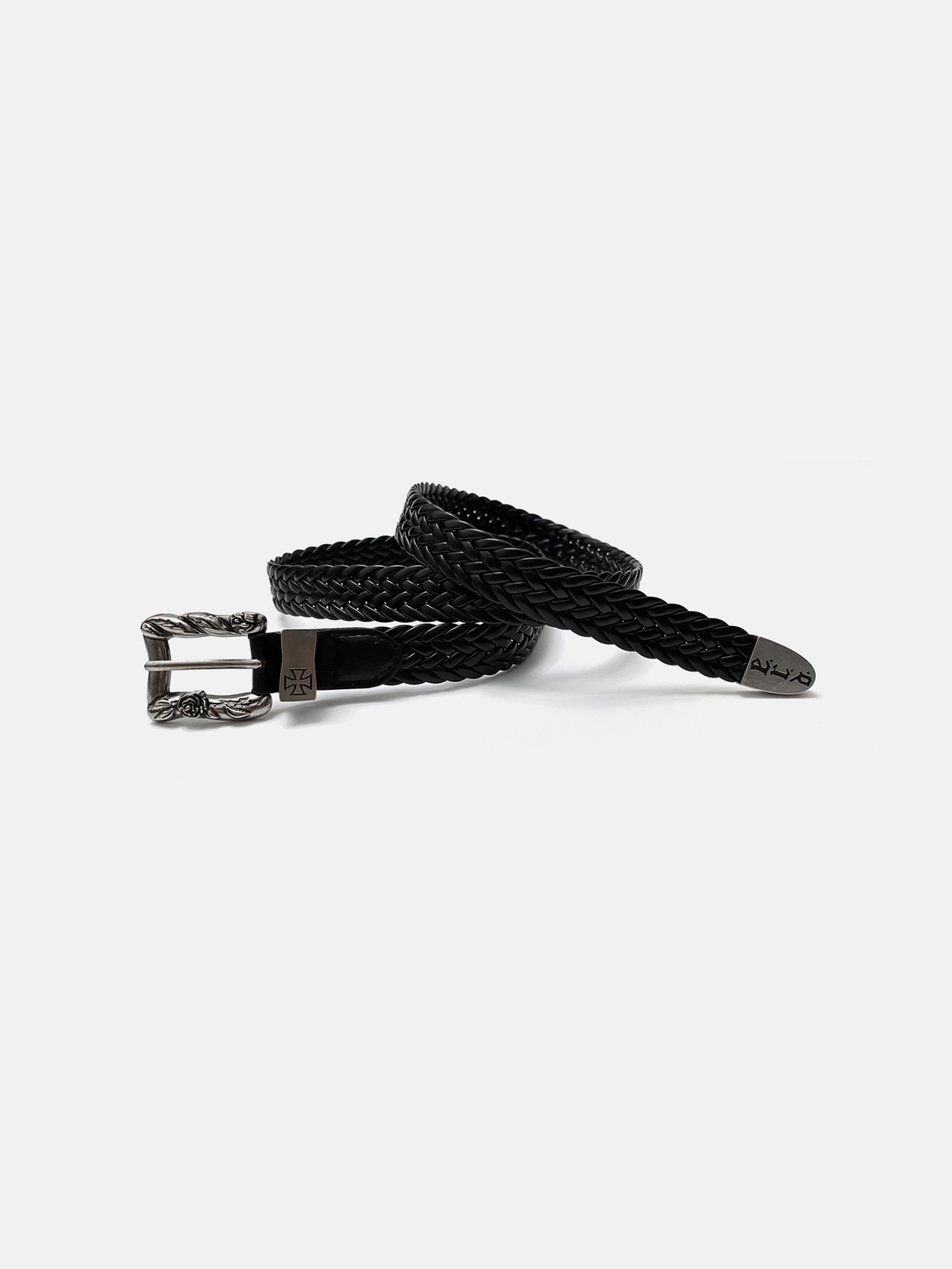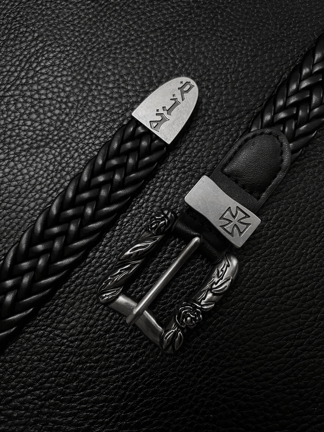 Traditional braiding meets contemporary refinement in this essential leather belt. Hand-woven construction creates textural sophistication across genuine black leather, while detailed silver buckle and matching tip deliver metalwork that honors centuries of craftsmanship tradition. Built for those who understand that some techniques transcend trends because they perfect the fundamentals.