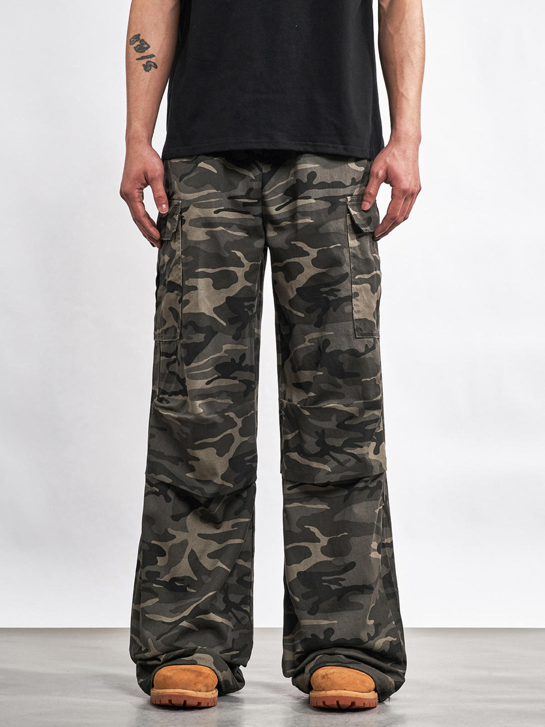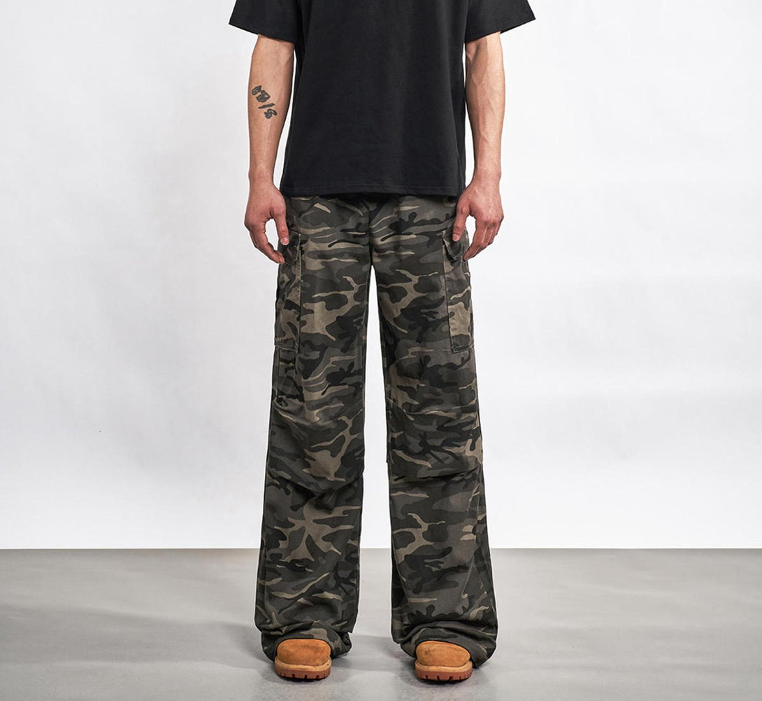 Military precision meets street rebellion in heavyweight cotton camouflage, merging tactical functionality with urban comfort. The oversized silhouette delivers effortless utility styling while multiple cargo pockets add authentic workwear character.