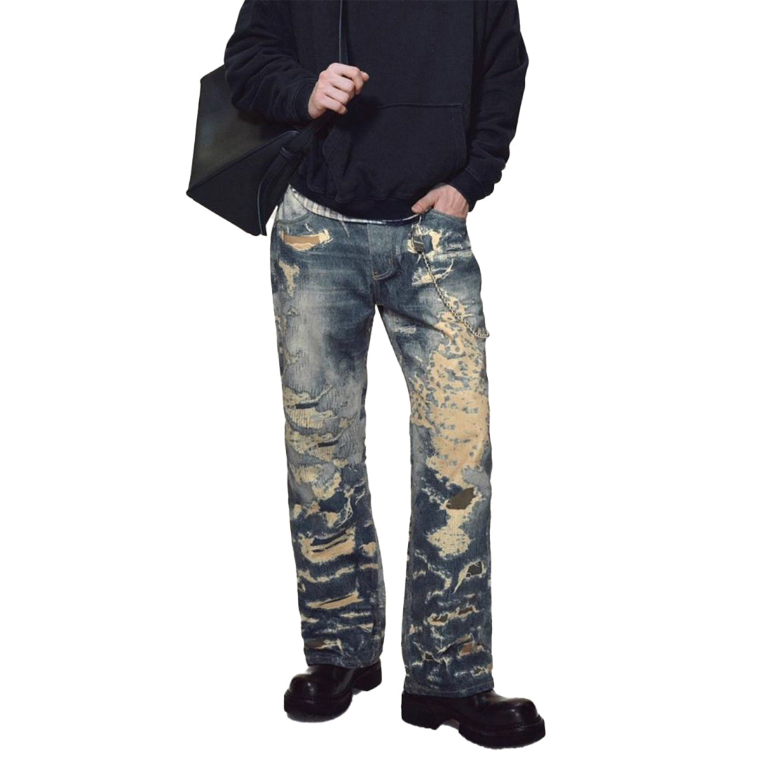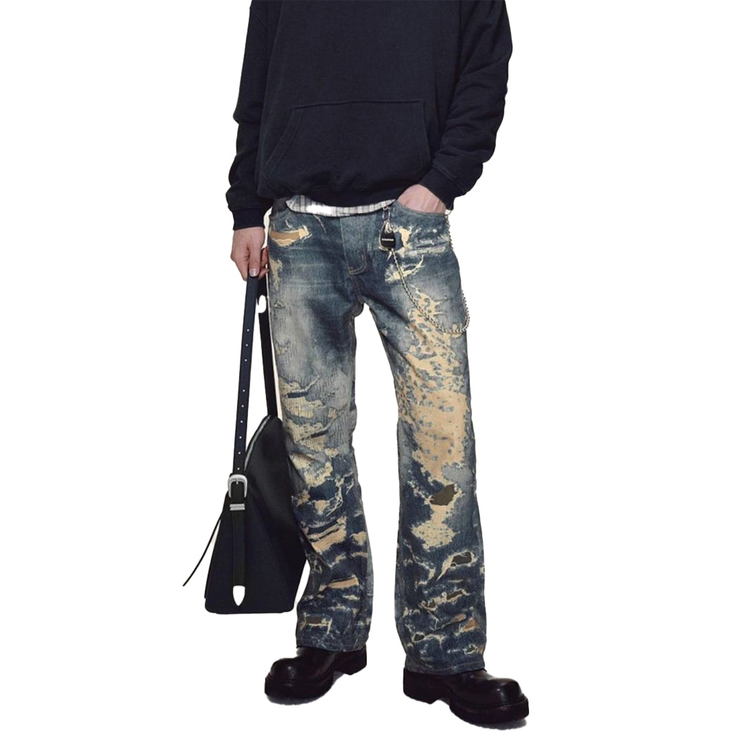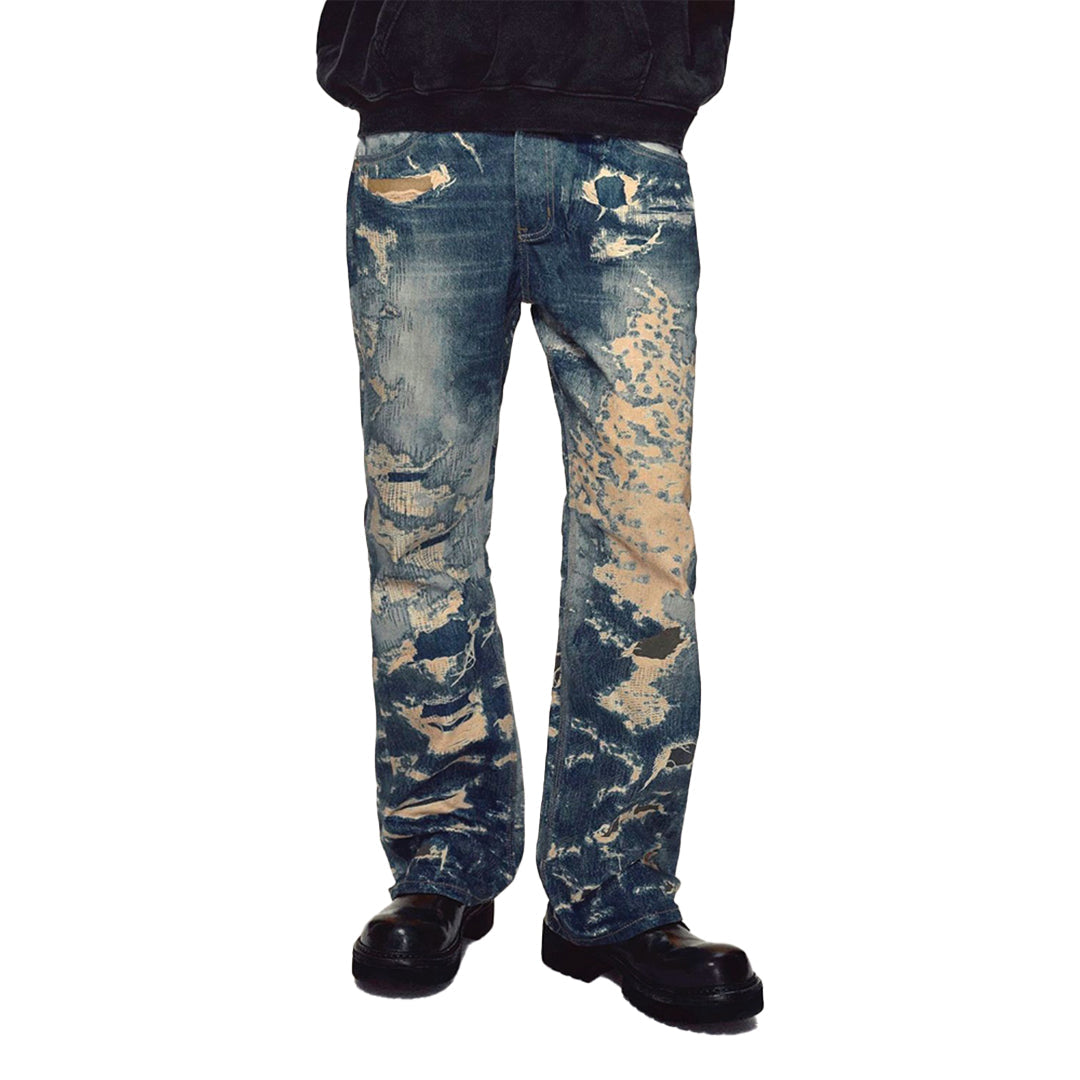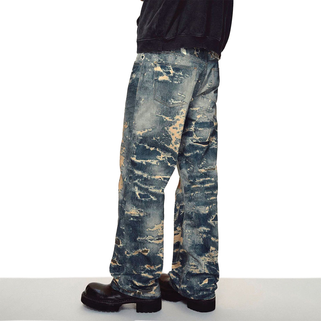 Hand-treated camo wash meets ultra wide-leg construction in heavyweight cotton denim built for daily adventures. The artisanal dyeing process creates unique earth-tone patterns that soften naturally with wear, while reinforced seaming ensures lasting comfort through every movement.