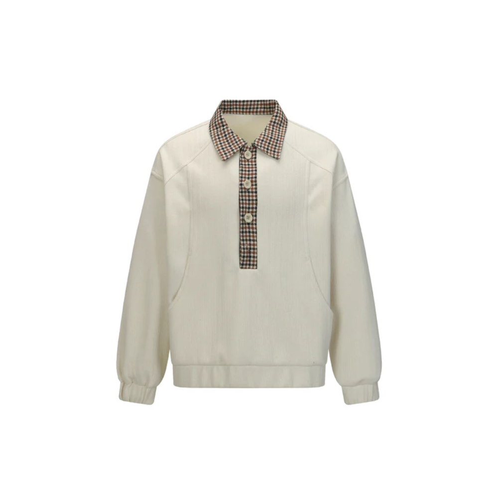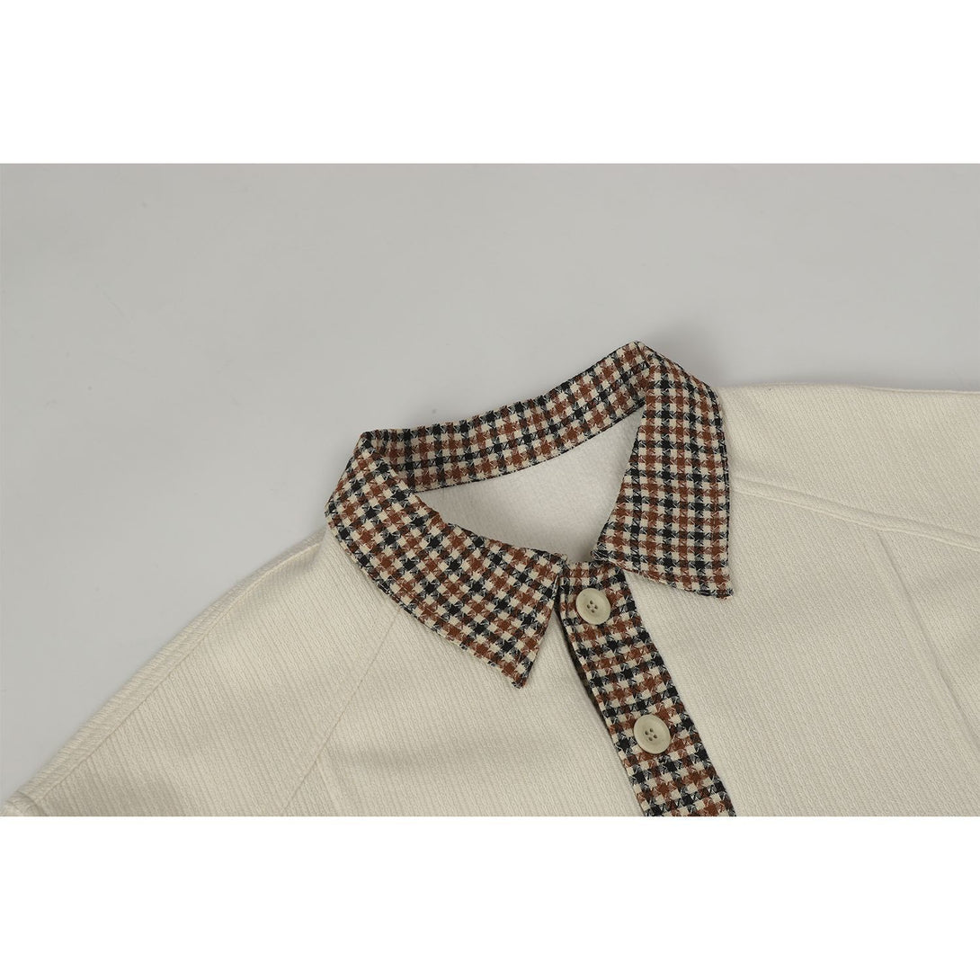 Clean cotton construction meets heritage check detailing in this refined pullover. Contrast houndstooth collar and button placket create visual distinction against the cream canvas, transforming classic polo proportions into a statement of quiet sophistication. Premium cotton with non-iron treatment ensures effortless wear that transcends seasons.